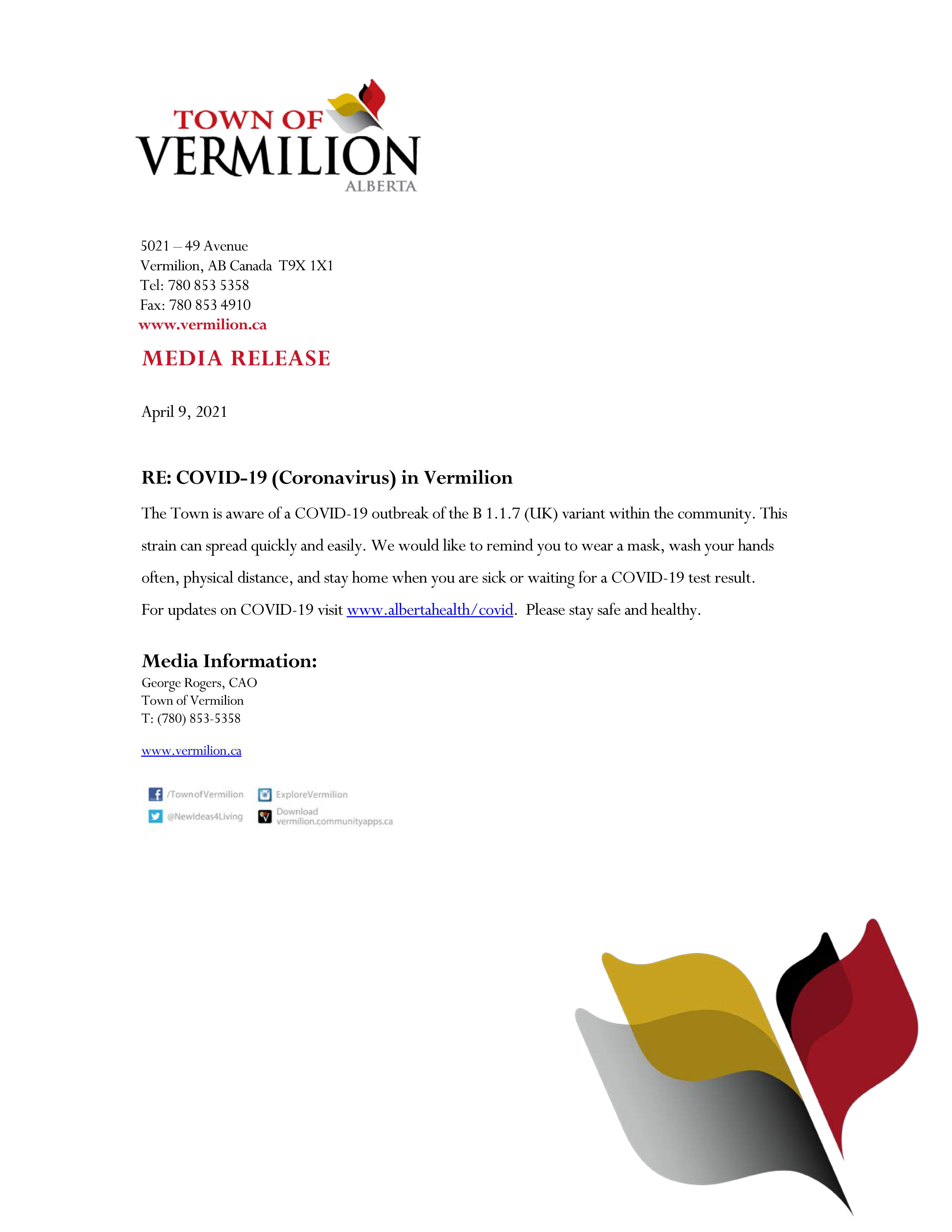 Town of Vermilion Press Releases / Updates on COVID-19 |